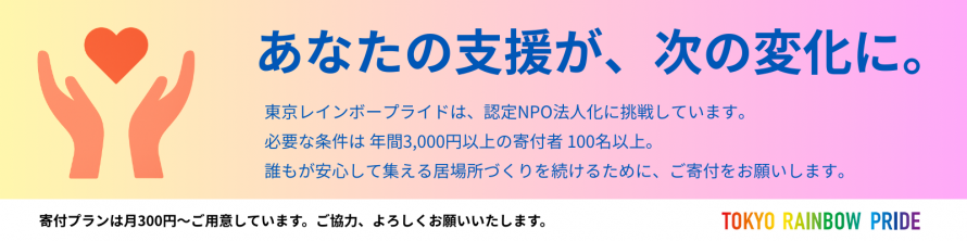 ● Queer Space Tokyoの運営に必要な費用は、東京レインボープライドの運営費によって支えられています。